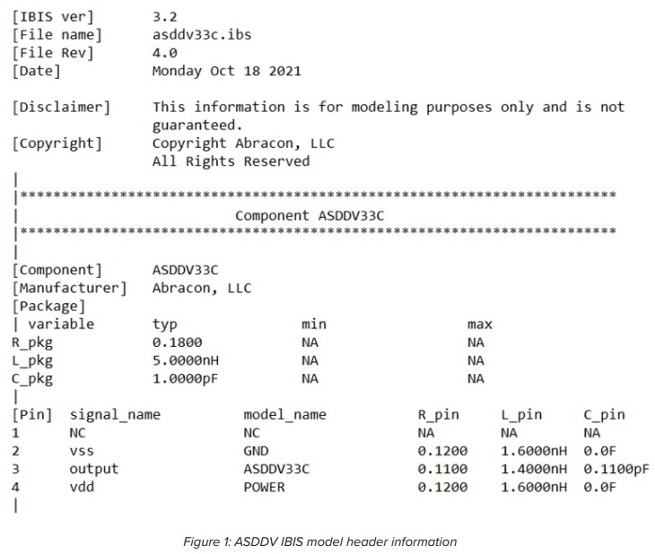 相比之下,石英晶振,使用IBIS模型來表示晶體振蕩器可以實現更快、更安全的仿真 到常見的結構模型對應物。這是有價值的,因為它允許制造商分享 模擬工具讓他們的產品和設計師更自由地計算振蕩器的影響他們的設計簡單快捷。 Abracon驗證IBIS模型,以確保它們符合IBIS開放論壇標準,從而確保我們產品的模擬可靠性。在前面的例子中使用的IBIS模型(Abracon貼片晶振ASDDV系列晶體振蕩器)。