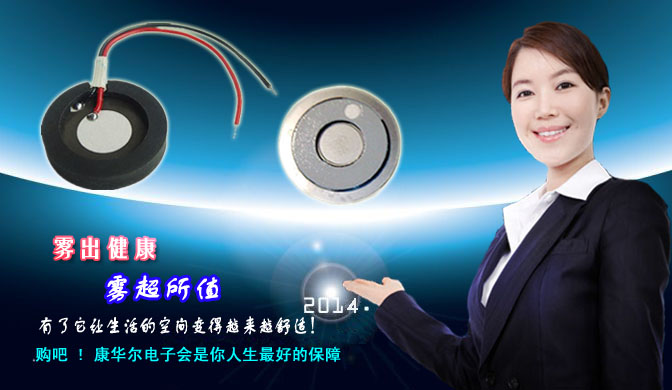 首先要介紹的這款叫微孔霧化片,微孔霧化片有分13.8mm,16mm和20mm,也有分帶線和不帶的,說仔細一點其實霧化片它的形壯就像硬幣一樣,當然它們的大小都不一樣,那么為什么會叫微孔霧化片呢?其實原因很簡單,因為這款產品它在無形當中能產生出200個細小孔,很神圣吧,當然用肉眼是無法看到的,那它是如何產生出霧氣的呢?那就讓我來一一分解給大家聽吧。霧化片它是利用超聲原理將水變成微小的水珠狀,從而產生霧氣噴出,微孔霧化片的噴霧原理是,你只要把他接上電然后把霧化片放入水中當然不是把整個霧化片放進去,你只要把霧化片放在水面上露出表面它的霧氣會通進那200個小孔產生出來,從而就能馬上讓室內的空氣變得不再干燥,它的材質是采用玻璃釉面精制而成,光亮美觀,具有很強的耐堿,耐酸等功效。主要應用與賓館盆栽,家用加濕器,某些醫療器械等領域。