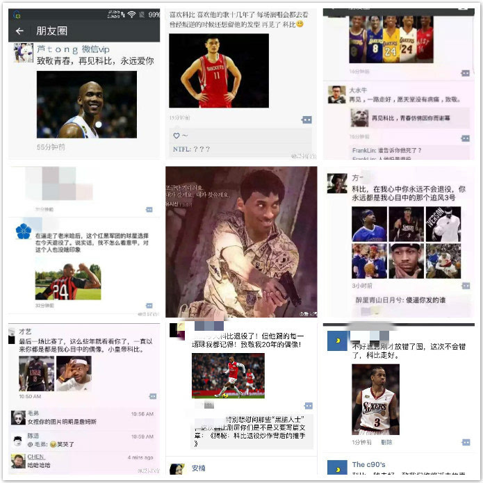 看看科比退役刷爆朋友圈里國人的心聲: