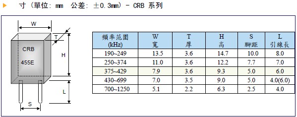 陶瓷振動子,CRB1.2M,壓電陶瓷諧振器,中頻壓電陶瓷晶振千赫系列產(chǎn)品,經(jīng)過公司長期開發(fā)研究,現(xiàn)在大部分頻點(diǎn)均已量產(chǎn),并且長期備有現(xiàn)貨,頻點(diǎn)多元化,多種款型,型號,體積,封裝,引進(jìn)插件以及貼片模式供客戶選用.康華爾所有生產(chǎn)的陶瓷晶振均經(jīng)過嚴(yán)格寬溫度范圍內(nèi)和長期老化試驗(yàn),確保客戶在使用過程中保持穩(wěn)定.該中頻陶瓷諧振器系列由固定,調(diào)諧,固態(tài)器件組成,該陶瓷振蕩子尺寸小,重量輕,具有卓越的抗振性能.為了該陶瓷振蕩子系列產(chǎn)品在電路中使用穩(wěn)定,本公司產(chǎn)品均嚴(yán)格做過各項(xiàng)驗(yàn)證,在線路中適合各款型IC可構(gòu)成免調(diào)整振蕩電路.成熟的產(chǎn)品被廣泛應(yīng)用家用電器,通信設(shè)備,兒童游戲等系列電子產(chǎn)品中.