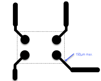 通過為每個焊盤提供短長度(~3毫米)和窄寬度(~150米)的走線,避免組裝過程中的不均勻熱傳遞.