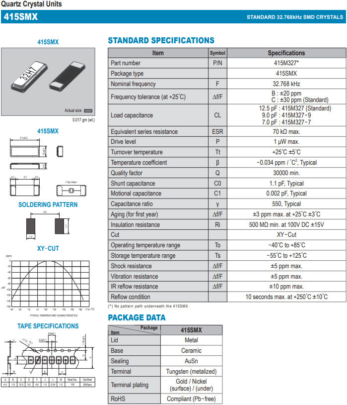 | SMI晶振 | 單位 | 415SMX晶振 | 石英晶振基本條件 |
