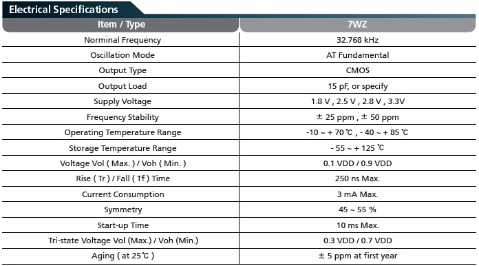 7WZ7050mm貼片晶振,32.768K有源晶振,TXC石英晶體振蕩器,滿足32.768khz RTC時鐘信號嚴格的公差要求,易于使用的SMD縫密封陶瓷外殼,4墊設(shè)計達到良好的焊接PCB上接觸,在晶體的諧振器使用良好的溫度性能,三態(tài)函數(shù)用于節(jié)電,通過無鉛認證/ Pb免費.