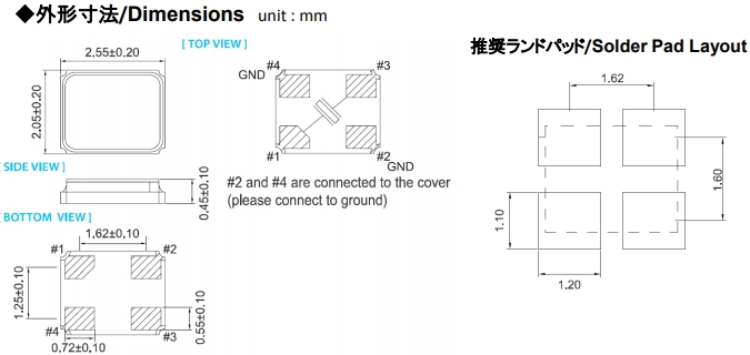 過高的靜電可能會損壞進口晶振,請注意抗靜電條件.請為容器和封裝材料選擇導電材料.在處理的時候,請使用電焊槍和無高電壓泄漏的測量電路,并進行接地操作.
