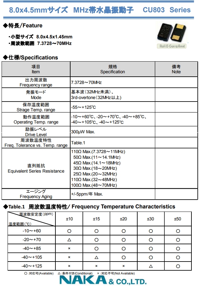 | NAKA晶振 | 單位 | CU803晶振 | 石英晶振基本條件 |