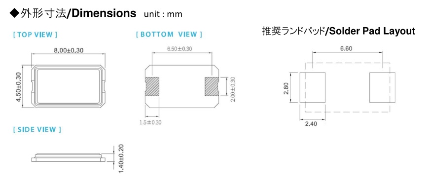 | 頻率老化 | f_age | ±5 × 10-6 / year Max. | +25°C,第一年 |