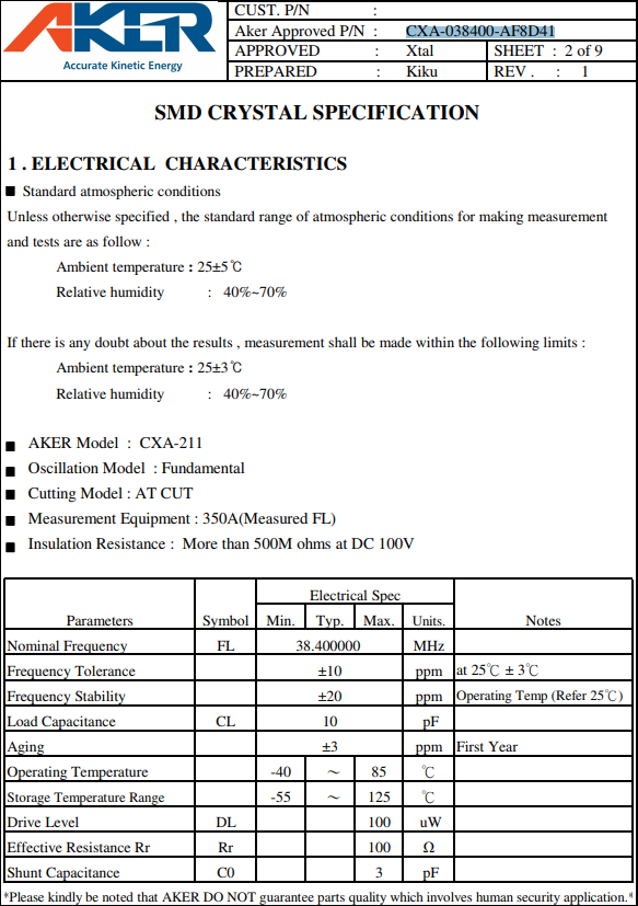 AKER晶體,CXA-038400-AF8D41進口晶振,CXA-211水晶振子