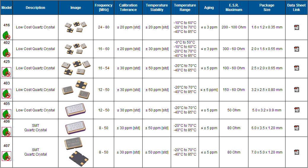 Model407無源晶振,5070mm晶振封裝,移動通訊設備晶振,標準7.0 x5.0mm表面山足跡穩定頻率溫度和驅動頻率范圍6 ~ 156.25 MHz頻率公差,±30 ppm標準(±10 ppm,±15 ppm和±20 ppm),頻率穩定±50 ppm標準(±10,±15,±20,±30和±40ppm)工作溫度-40℃+ 85℃磁帶和卷軸包裝.Model407是一個陶瓷包裝水晶提供減少尺寸,適合高密度電路板的應用程序.407年模型提供了可靠的精度和優良的沖擊性能在無線通信設備.