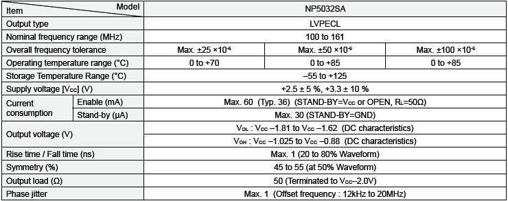 日本NDK晶振代理商,NP5032SA振蕩器,NP5032SB有源晶振,尺寸封裝5.0×3.2×1.2mm電源電壓2.5V~3.3V,LVDS輸出水平,低消費(fèi)電流(36mA Typ.),低相位抖動(dòng)(0.15ps Typ.@156.25MHz).