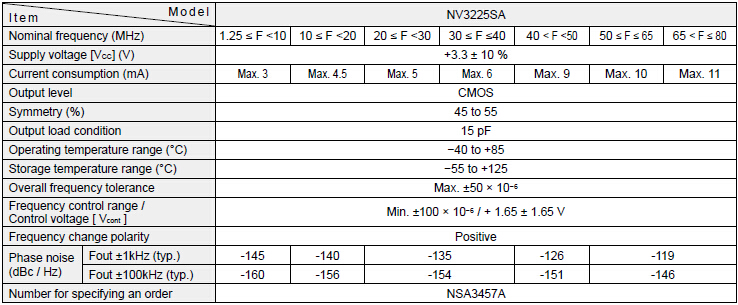 日本電波晶振,NV3225SA壓控振蕩器,高精度VCXO晶振,小型薄型:尺寸3225、高度0.9mm,頻率可變范圍:±100×10-6以上,工作溫度范圍:-40 ~ +85°C,CMOS輸出、低消耗電流.
