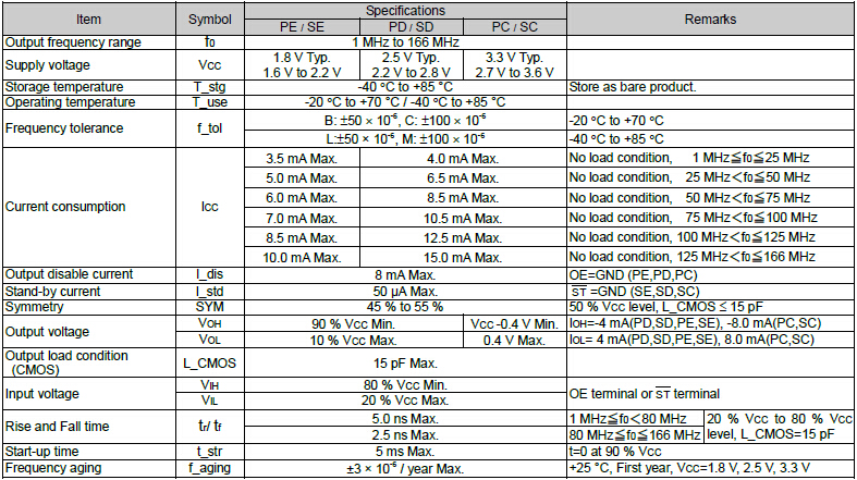 SG-8003CA可編程晶振,石英晶體振蕩器,EPSON打印機晶振,頻率范圍1.0MHz~166.0MHz,電源電壓3.3V,功能使能(OE),外部尺寸規格7.0×5.0×1.4mm,主要應用領域:無線通訊,高端智能手機,平板筆記本WLAN,藍牙,數碼相機,DSL和其他IT產品的晶振應用,三態功能,PC和LCDM等高端數碼領域,符合RoHS/無鉛.