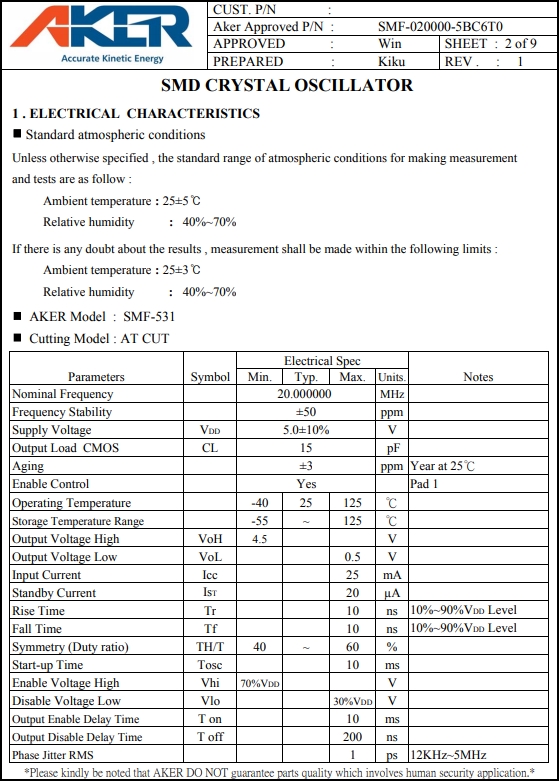 AKER晶體,SMF-020000-5BC6T0振蕩子,SMF-531進口晶體