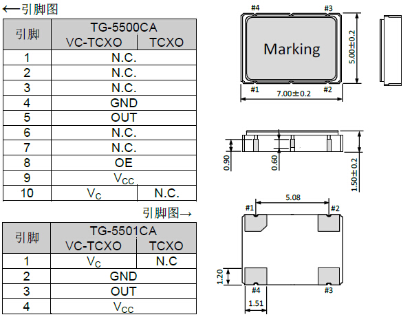TG-5501CA溫補晶振,5070mmTCXO晶振,愛普生晶振供應商,頻率范圍10.0MHz to 50.0MHz,電源電壓2.7V ~ 5.5V,外部尺寸7.0*5.0*1.5mm,工作溫度-40~+85℃,該體積產品最適合于GPS,以及衛星通訊系統,智能電話等多用途的高穩定的頻率溫度特性晶振.
